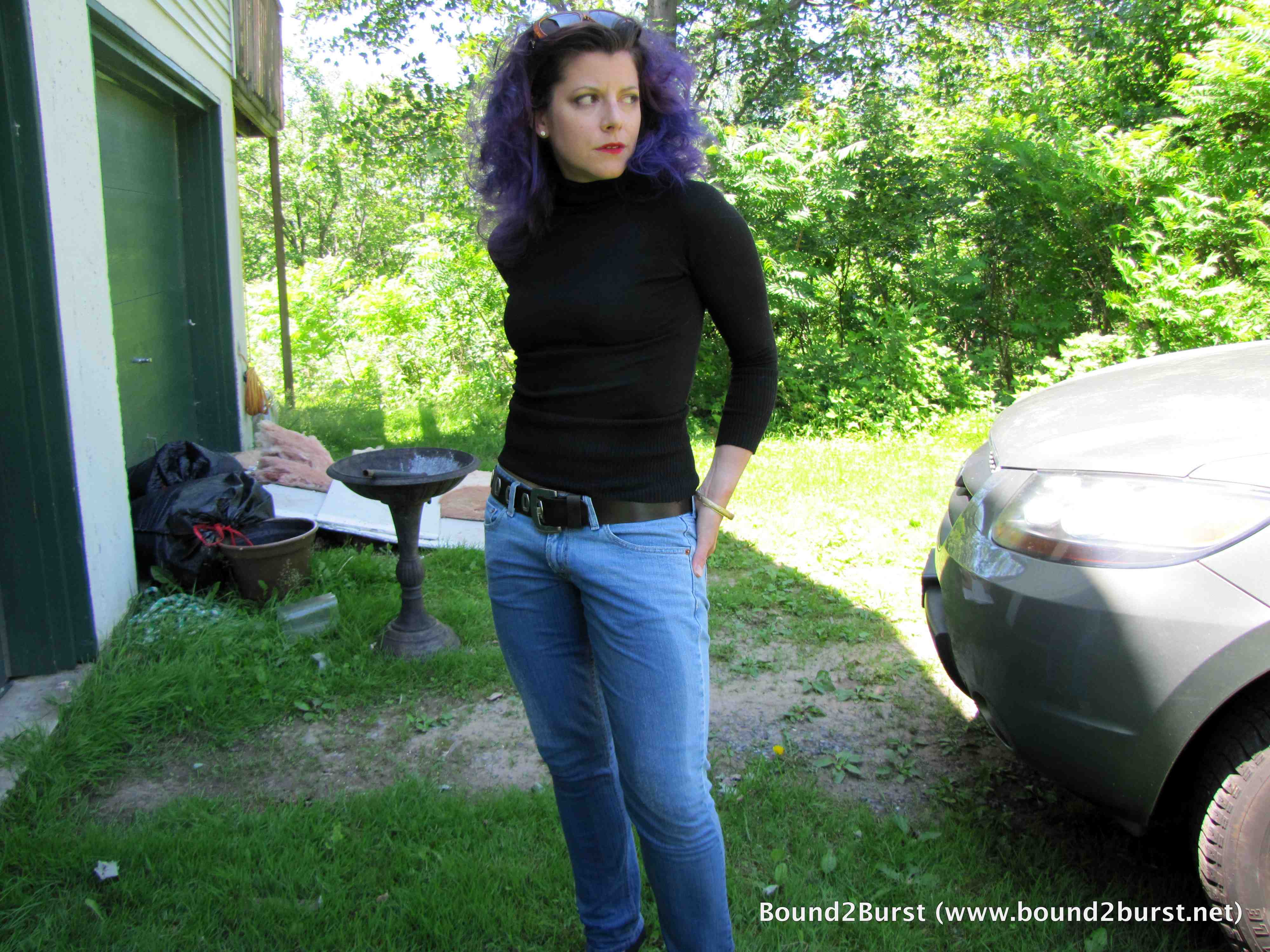 Held up by a real estate agent, Bev has a little accident in her jeans.
