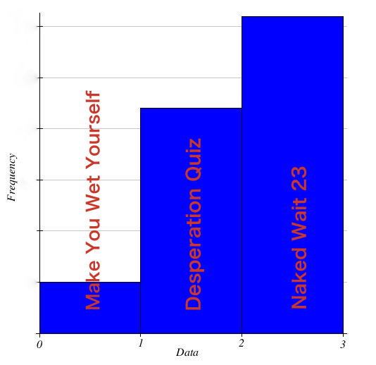 I think the initial sales of Cadence and Laci movies makes my point very clearly. The histogram below shows the relative sales of the individual clips only, not the set. In order of popularity, we have nudity with no storyline (Naked Wait 23), clothed with no storyline (Desperation Quiz) and clothed with a storyline (Make You Wet Yourself). This trend is the reason for the changes here in the past few months.