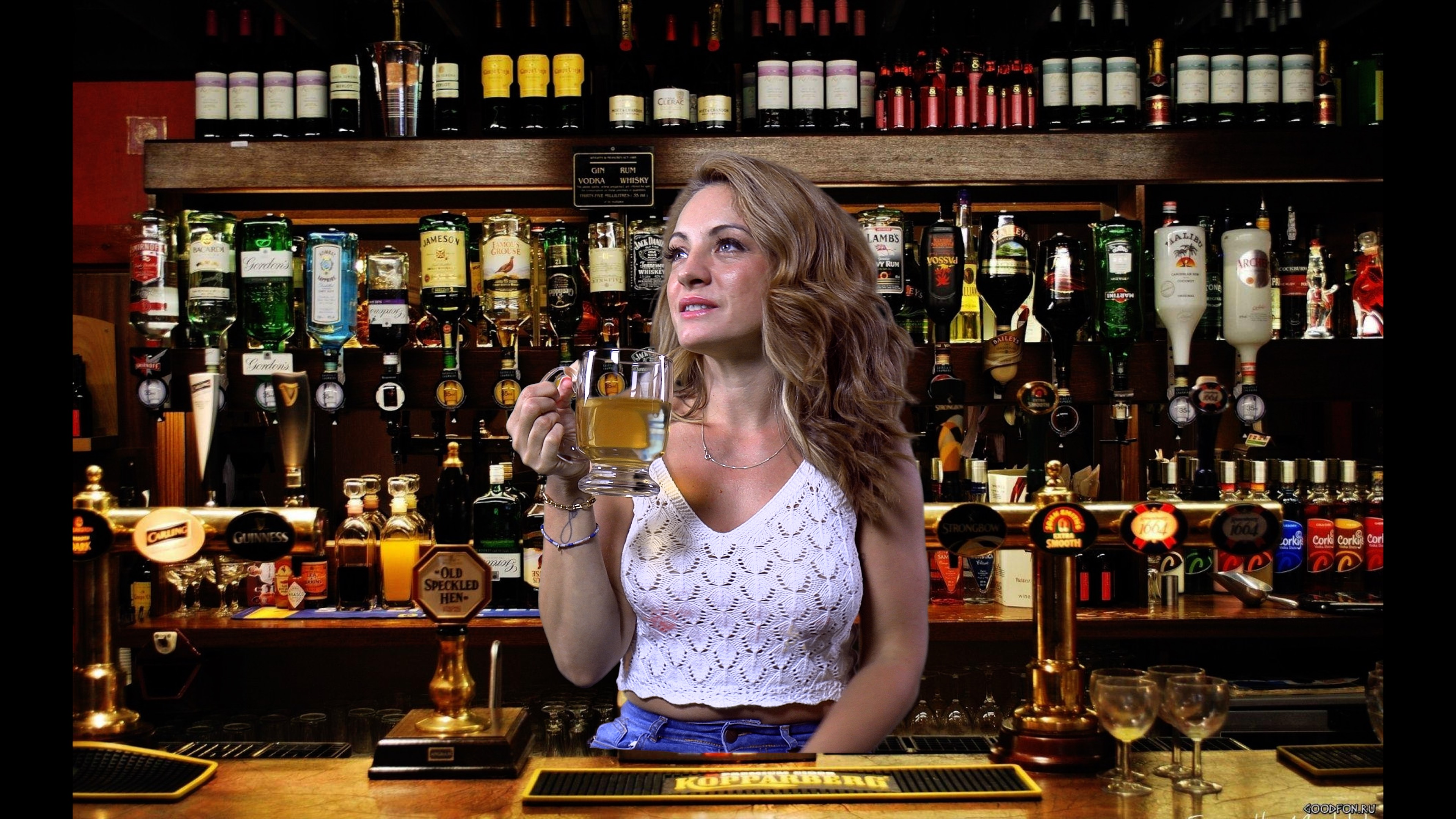 Wearing only panties, heels and a thin top, Beverly has been asked to do a little washing up, half an hour after tanking up with more liquid - water this time. She is also