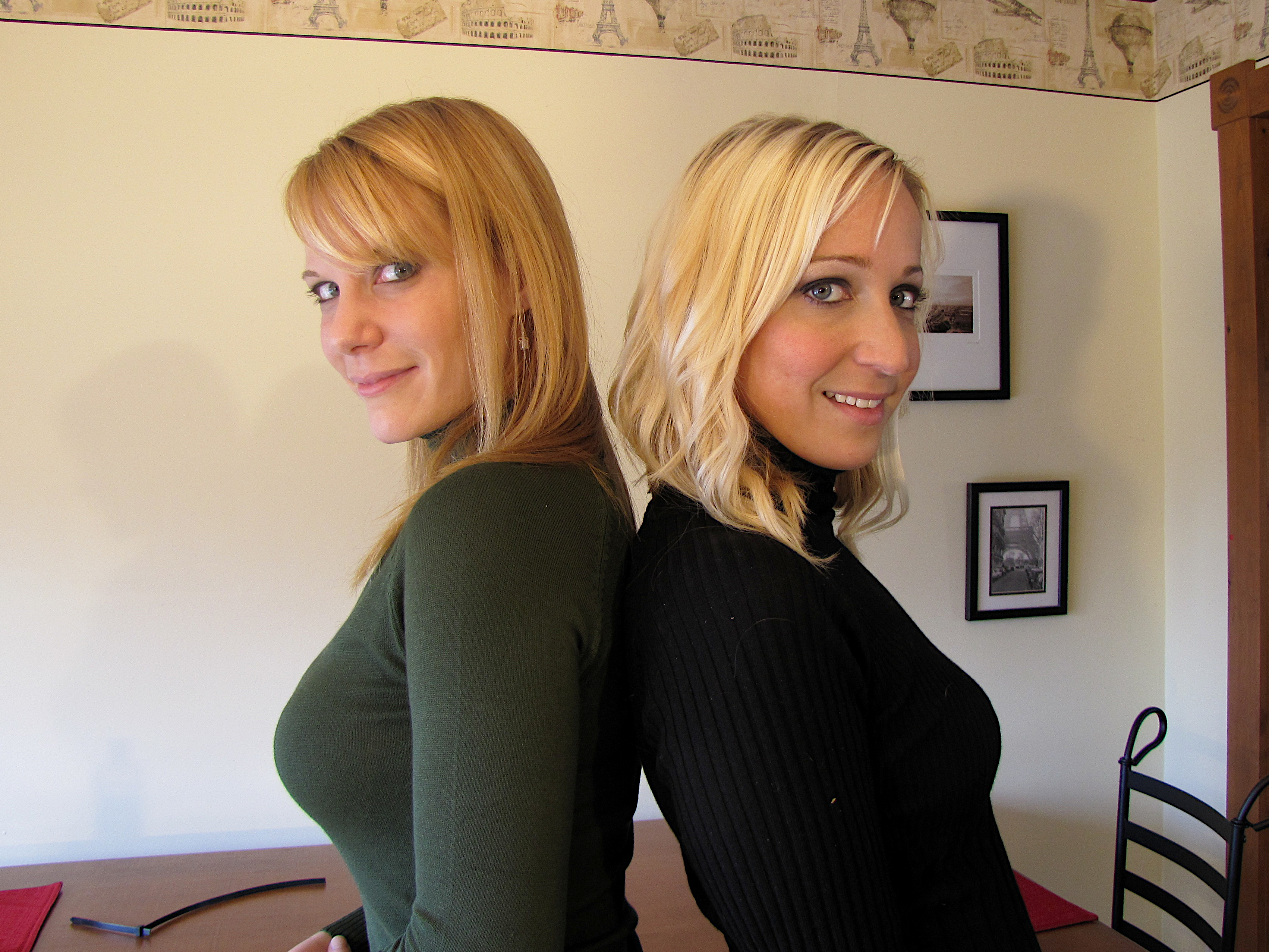 Lily and Amber have just arrived home from work. Their commute home was long and they are both sporting very full bladders. They just start to argue over who is going to use the bathroom first when the notice